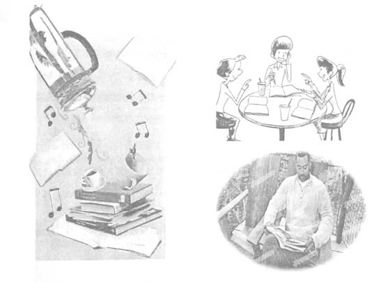 W: It ’ s the end of the semester. Everyone is in the library.