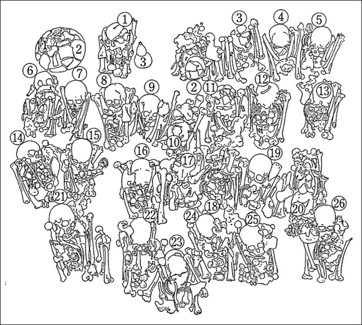 另外,人们对史家遗址的合葬墓中出土的头骨进行了测量,测定值经统计学分析得知,同一墓圹内的测定值类似度相当高,由此可以明确的是,这些多人埋葬的遗骨并非婚姻家族的群体墓,而是以血缘家族为单位的合葬墓。