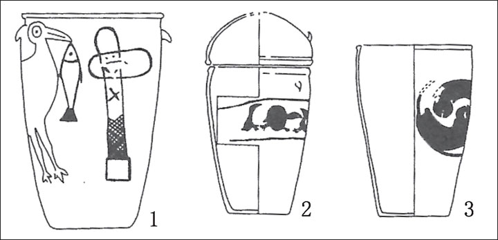 这类大口尊应当是由父系首领直接管理,并以酒为媒介,利用鬶、杯、背壶等进行相关的仪式。可以想见,通过这些仪式,掌握巫术和医术的父系首领的权威越发得到提高,从而促进整个氏族的团结。独占着与神灵的交流权的父系首领一定是同时也把大口尊的文字记号置于自己的管理之下,并由此掌握包括祖先祭祀在内的各种仪式,以稳固氏族的团结,从而有可能开展更为集约的生产活动。
