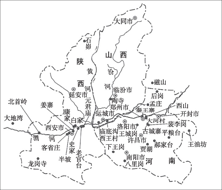 新石器时代前期至后期,渭河流域有老官台文化——仰韶文化——客省庄二期文化,黄河中游地区有裴李岗、磁山文化——后岗文化——大河村文化——庙底沟二期文化——王湾三期文化,这两大文化系统之间存在着相互影响的关系。所以也可把两者合称为仰韶、龙山文化系统。下文将从聚落和墓葬的角度来观察该地区的社会状况。