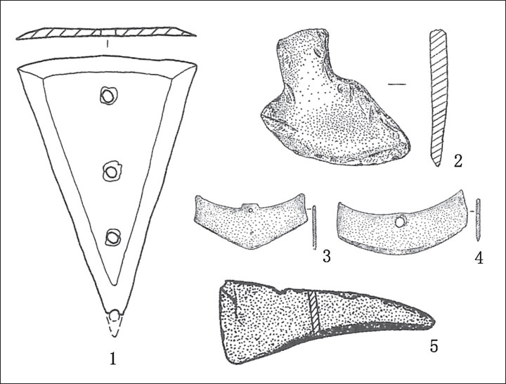 城址遗迹由新石器时代中期所见的环壕聚落发展而来,但环壕聚落的环壕主要用于防御周边的野生动物,并不具有聚合群体的意义。夯土而成的城址遗迹则不同。如果把同一阶段的石镞等武器化的石器考虑在内的话,城址遗迹拥有更强大的防御机能。有机地结合在一起的聚落群是扩大后的群体的聚合体,在聚落群之间也开始有包括战争在内的摩擦发生。关于这个问题,将在第八章加以详述。