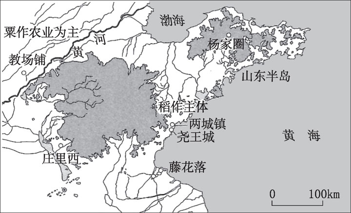 如前所述,在黄河流域一边以粟、黍为主的杂谷农业为主体,一边在一部分区域的杂谷农业中引进了水稻。在山东半岛面向黄海的沿海地带,水稻农业很可能是从长江下游地区及淮河流域经过滨海地带北上而来。