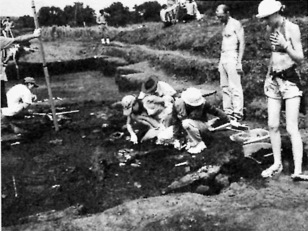 这次考察的领队分别是熊本大学的甲元真之教授和俄罗斯科学院远东分部的伯斯托雷茨沃夫先生。我也参加了这次考察。考察中由于被成群的蚊子叮咬,面部奇痒,留下的疤痕就像长了满脸粉刺一般。严酷的自然条件使发掘考察非常艰辛,令人印象深刻。如今仍不由得回想起住宿在遗址附近的简易帐篷之中的生活,以及在冰冷河水中洗澡、与俄罗斯学者们围着篝火交谈至深夜的情景。这是一次除了发掘活动之外也留下难忘回忆的考察。而且最后还出乎意料地发现了十粒粟、黍。这般收获可说是发掘考察最大乐趣。