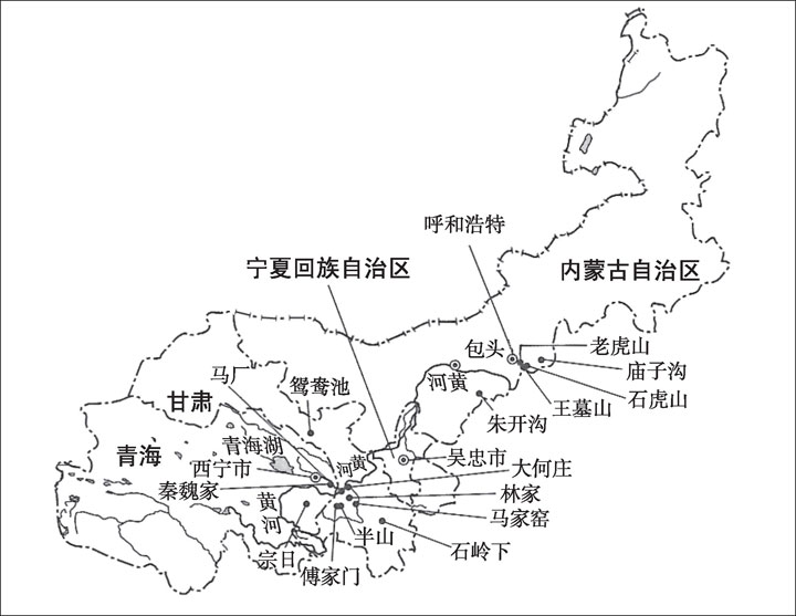 而在中国西北部的甘肃省及青海省等甘青地区,情况又如何呢?甘青地区在新石器时代中期,从渭河流域传入仰韶文化的彩陶,诞生了仰韶文化石岭下类型。其后,彩陶样式当地化,出现了马家窑类型、半山类型、马厂类型等,被称之为甘肃彩陶文化的马家窑文化。马家窑文化在龙山文化并行期又逐渐向齐家文化变化。在甘肃彩陶文化和齐家文化中,存在着小口双耳罐及双耳罐、单耳罐等当地特有的带有把手的器形。这些器形普遍见于甘青地区与内蒙古中南部并行时期,由此可以看出两地之间存在相互的区域交流。也就是说,这是长城地带共通的文化信息带形成的阶段。与此同时,该地带开始逐渐显现出不同于黄河中游地区及渭河流域的区域文化的样态。