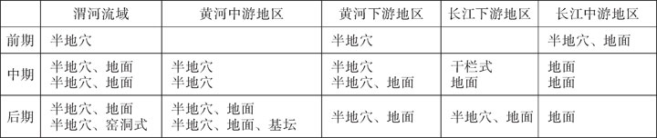 如上所述,在各地可见一定的区域性房屋构造的变迁和系统性,但在新石器时代后期,尤其是以在黄河中游和下游地区为中心的区域内,平地穴式房屋即地面建筑与半地穴式房屋开始并存。