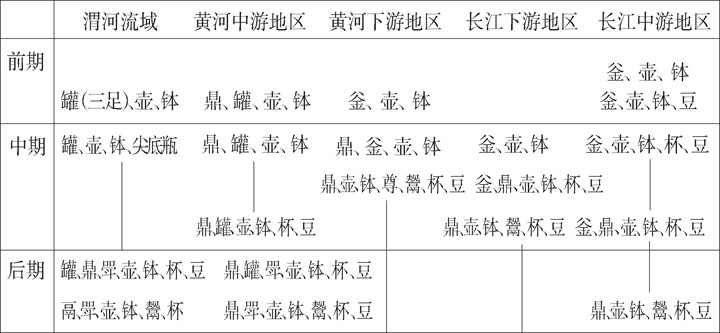 值得注意的是,除新石器时代终末期的鬲之外,在新石器时代后期,各区域独创的陶器器种在渭河流域至黄河中下游地区以及长江中下游地区等大范围区域内都达到了共有的状态。在相当于后来的商周社会文化范围的区域内的陶器一致性显示的是,这些区域作为新石器时代后期的兴盛的交流圈,到达了共同拥有大范围的信息的阶段。
