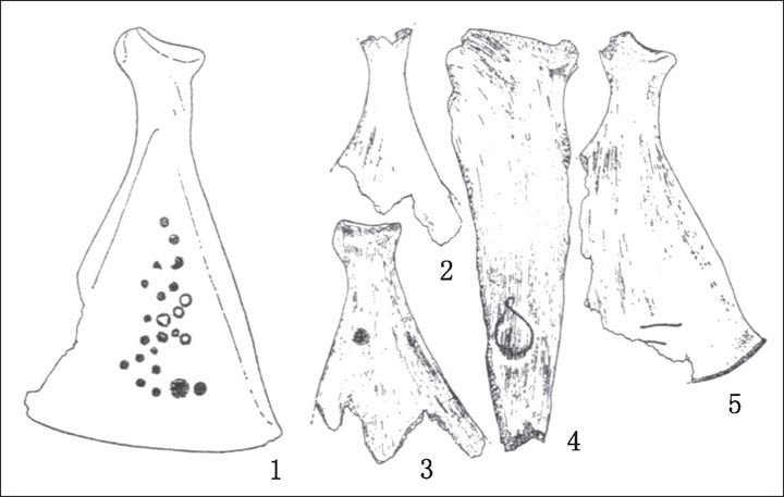 卜骨就是利用上述牛、羊、猪等家畜动物以及鹿等动物肩胛骨,将之烧至龟裂,并据其龟裂的形态来占卜吉凶。以卜骨占卜未来的行为本身即是一种祭祀行为,对史前社会而言这是一种不可缺少的祭祀行为。用作卜骨的动物之中,羊最常见,其次是猪、然后是牛。鹿只占一小部分。这些动物的肩胛骨被用作占卜,而这些动物大半为家畜,这个事实中包含着重要的意义。而且除了猪、狗,占主要部分的是牛和羊等畜牧动物,这说明卜骨与畜牧活动有着密切的关联。