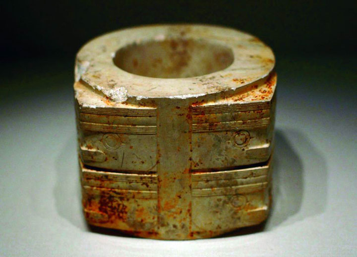 另外,来自大汶口文化的玉牙璧也在山东龙山文化中得到发展。玉牙璧是一种在圆盘形的玉制品正中打孔、边缘加工为齿状的玉器。