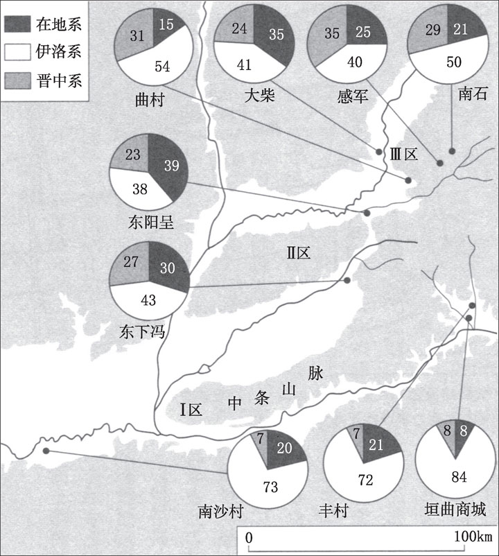 143 伊洛系陶器的扩散(据秦小丽1998)