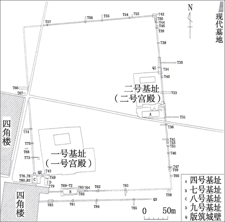 沿着二里头文化三期的一号宫殿和二号宫殿周边的道路网,又新发现了城垣的遗迹。从环绕宫殿区的用于防御的城垣来看,它应相当于我们今天在北京紫禁城见到的内城即宫城。