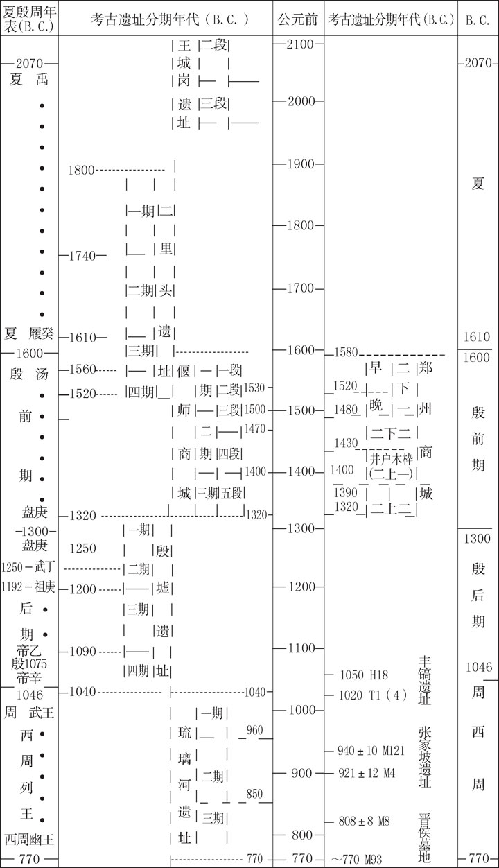 关于夏王朝开始的年代,因为夏王朝的统治时间尚无明确根据,在此无法论及。另一方面,关于用作年代定点的克殷的时间,如前所述东京大学的平势隆郎先生对夏商周三代断代工程专题组的学说进行了详细评判,并提出克殷时间应为公元前1023年的观点。在本丛书第二卷中将有详细论述,请读者参考。