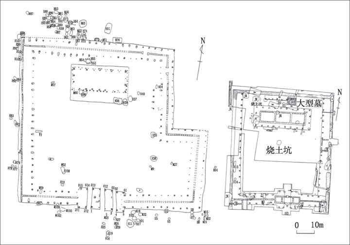 142 二里头遗址1号宫殿(左)与2号宫殿(右)