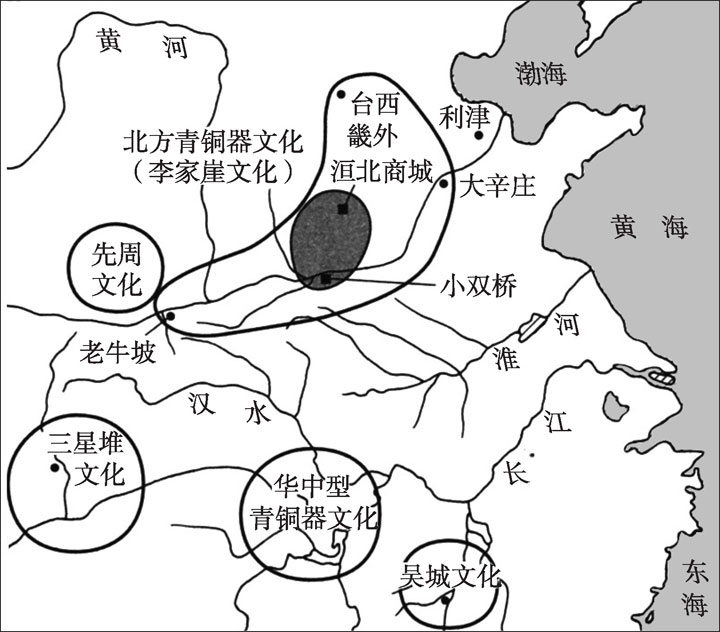 在这个时期登场的是与商王朝有着直接关联的河北省藁城县台西遗址和山东省济南市大辛庄遗址。特别是后者,很可能与山东省利津县附近的一处烧制特殊陶器的窑址有关。这个窑址位于渤海南岸,其时期与大辛庄遗址相同。