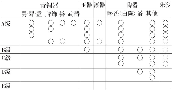 在郑州商城和偃师商城附近迄今为止尚未发现相当于王墓的最高阶层的墓葬,所以关于墓葬构造上的阶层构造复杂化的问题在此无法做出精确描述。但是同样规范的位阶体系在层面上的扩展是显而易见的。同一的位阶体系也可说是通过青铜彝器的组合体现的位阶标志。如“问鼎轻重”的典故所体现的那样,在中国古代,拥有的鼎的数量及其是否拥有其他青铜器,显示着贵族阶层的身份地位。