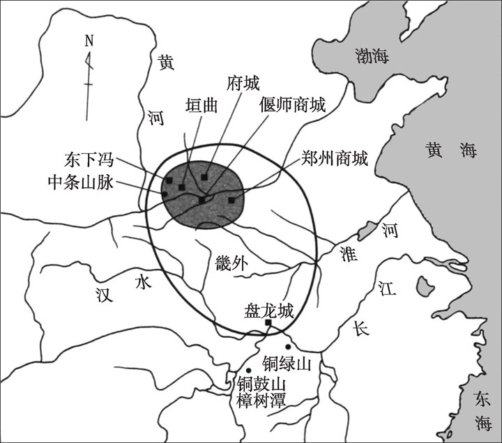 但是,在位于出产铜矿的铜绿山遗址及铅矿山附近的湖南省岳阳市铜鼓山遗址,发现了二里岗文化样式的陶器,说明当时这里很可能受到商王朝的影响,并直接有殷人往来于其间,而上述区域是位于畿外的周边区域。也就是说当时也能够确保来自周边区域的资源。这些周边区域之中,一定也出现了与商王朝敌对的区域首领。这就是甲骨文中提到的方国,它们也是商王朝的敌对势力。另外,也是从上述阶段开始,在二里岗文化的影响之下,周边区域开始出现青铜器,或是开始了青铜器的生产。京都大学人文科学研究所的浅原达郎教授曾把这个现象称之为“二里岗冲击”。我认为这个名称十分贴切。周边区域由于二里岗文化的刺激,完成了自立性的成长。