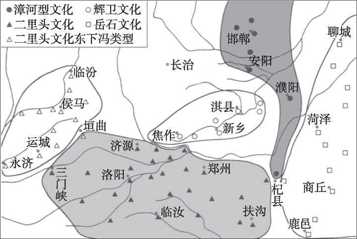 在邹衡先生和张立东先生提出的先商文化辉卫型(辉卫文化)的分布范围之内,伊洛系陶器也显示出相当高的比重。并且二里头文化期只建造了少数城址,这说明当地有可能承担着二里头文化的前线基地式的职能。也就是说其政治领域的一时的扩张有可能对应着二里头遗址的扩大期。