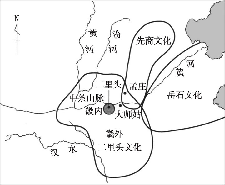如上所述,在二里头文化阶段,以二里头遗址为中心,形成了向心式的聚落间网状分布。耐人寻味的是,二里头文化作为一种文化样式形成了广阔范围的区域圈。其具体划分是,此前的陶寺文化为东下冯类型,三里桥文化为南沙类型,王湾三期文化的嵩山南侧部分为下王岗类型。以别种文化为母胎,二里头文化圈形成了一个领域广阔的文化信息带。这并不一定表示以二里头遗址为顶点的政治性统一体的形成,但在该文化圈内共有着二里头文化这个共同的文化样式。关于二里头文化期社会统合的具体内容将在后文提及。