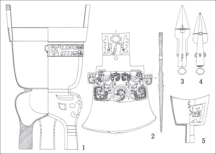 同样的情况也适用于难波纯子女士所说的华中型青铜器。虽然制造地点尚难以确定,但这类青铜器是在长江中游地区自主生产的,并且已转变成为当地的威信物。虽然与商王朝的青铜器礼制体系不同,但通过模仿商王朝的大型青铜彝器,当地开始生产青铜彝器。