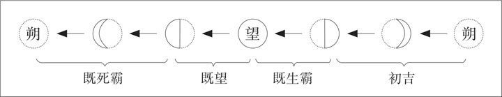 将每月四分,每段为七至八天,这种方法所表现的是月亮的四种状态。到第一个半月出现为止是“初吉”,此后是“既生霸”,然后是“既望”,最后是“既死霸”。这种变化一言以蔽之曰“月相”。
