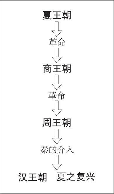 在《史记》所创造出的“形式”中,夏王朝、商王朝、周王朝都是统一天下的王朝,三者之间的关系是政权交替的关系。当这一政权交替轮回一周之后,继承周王朝的自然就应该是新的夏王朝了。