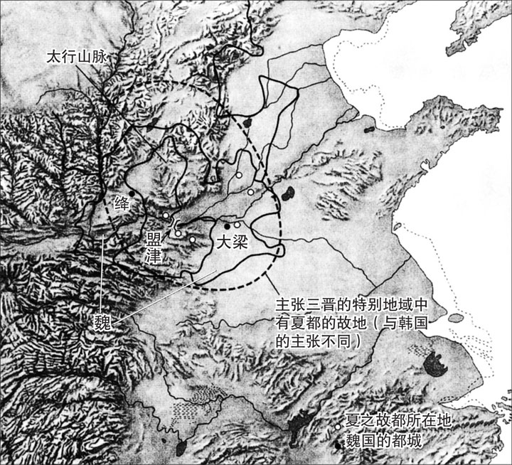韩国认为自己继承了晋国,因此对夏王朝的故地具有正当统治权。与此相对,魏国的史书则是顺着诸夏的大夫以下克上、成为诸侯、最终称王的历史发展而展开。只不过魏国将许多夏王朝的故地都设定到了自己的领土范围内。
