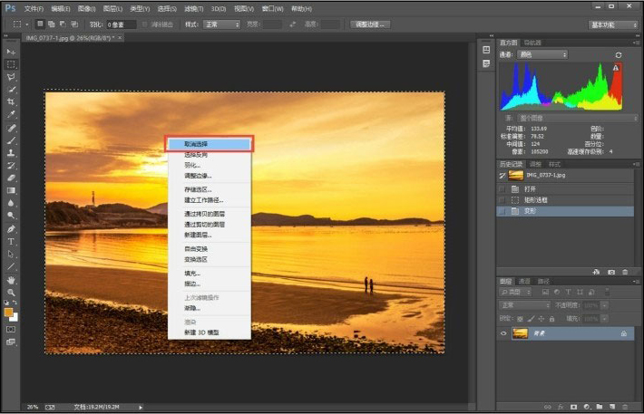 此时照片会返回软件主界面,右键单击画面,在弹出的菜单中选择“取消选择”菜单命令,取消画面的选中状态(也可以直接按Ctrl+D组合键取消选区)。
