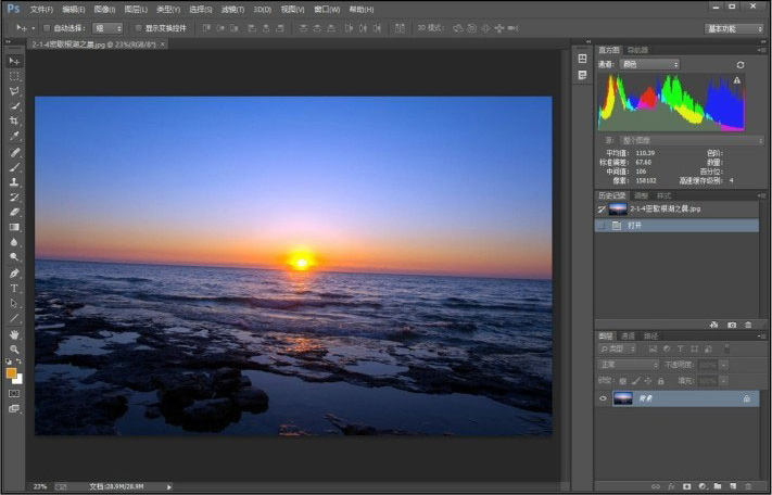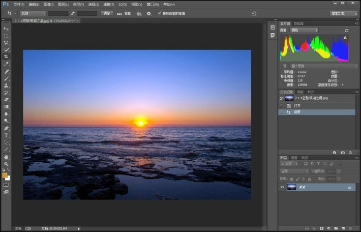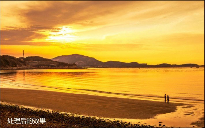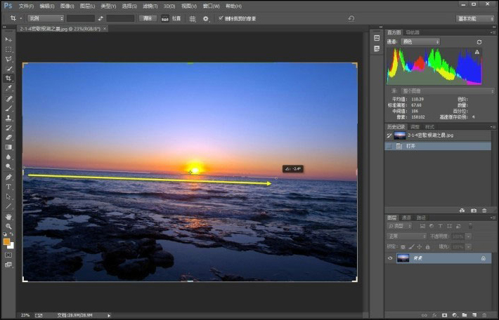 在一些风光画面中,会有明显的地平线或是天际线。如果这类照片发生了倾斜,可以利用Photoshop中的拉直工具来进行处理。