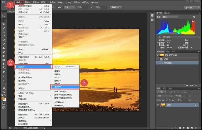 在“编辑”-“变换”菜单中选择“变形”菜单命令,如图所示。