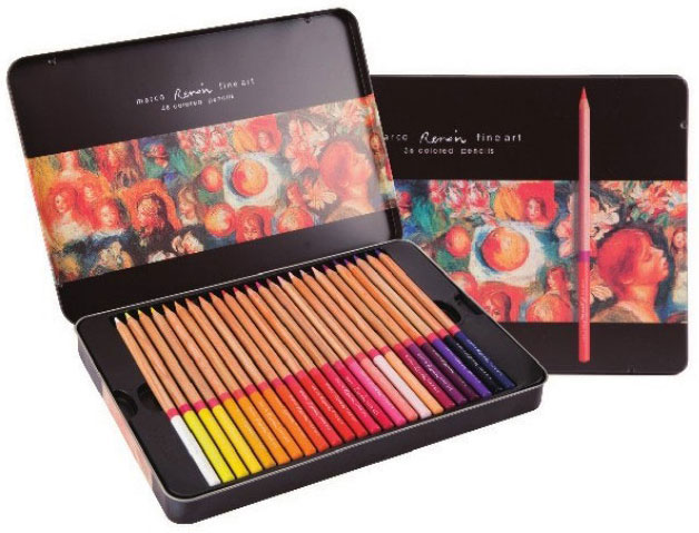 雷诺阿是马可牌彩铅的高端产品系列名称,有油性和水溶性两种产品。笔杆是高级的进口木质笔杆,手感很棒。雷诺阿系列彩铅笔芯偏软,颜色饱满,不管是叠色效果还是显色效果都很出色,是专业的绘画工具。