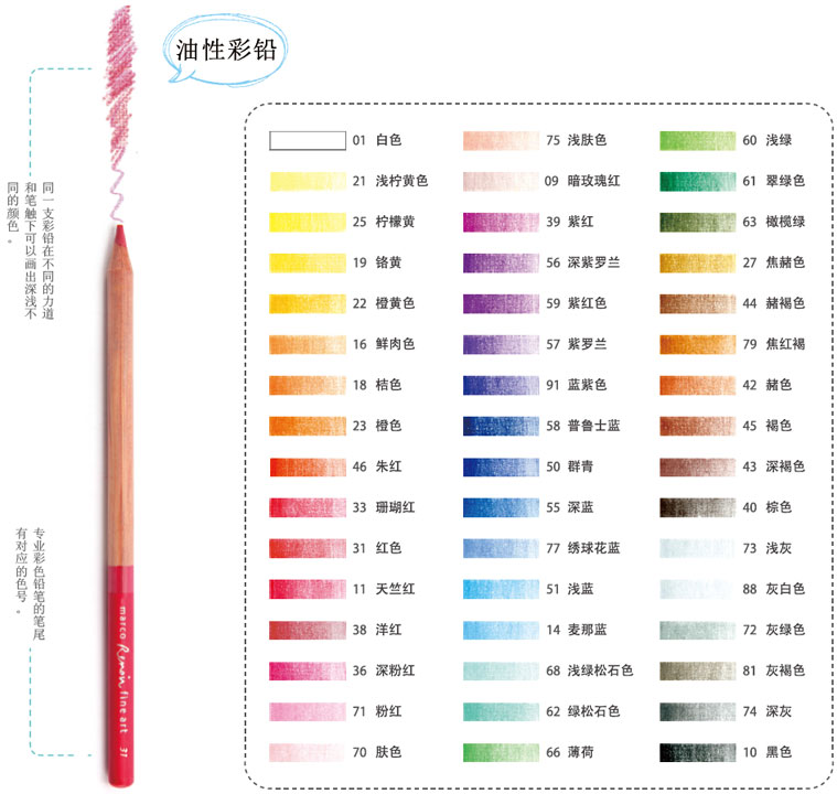马可雷诺阿3100油性彩铅48色色谱
