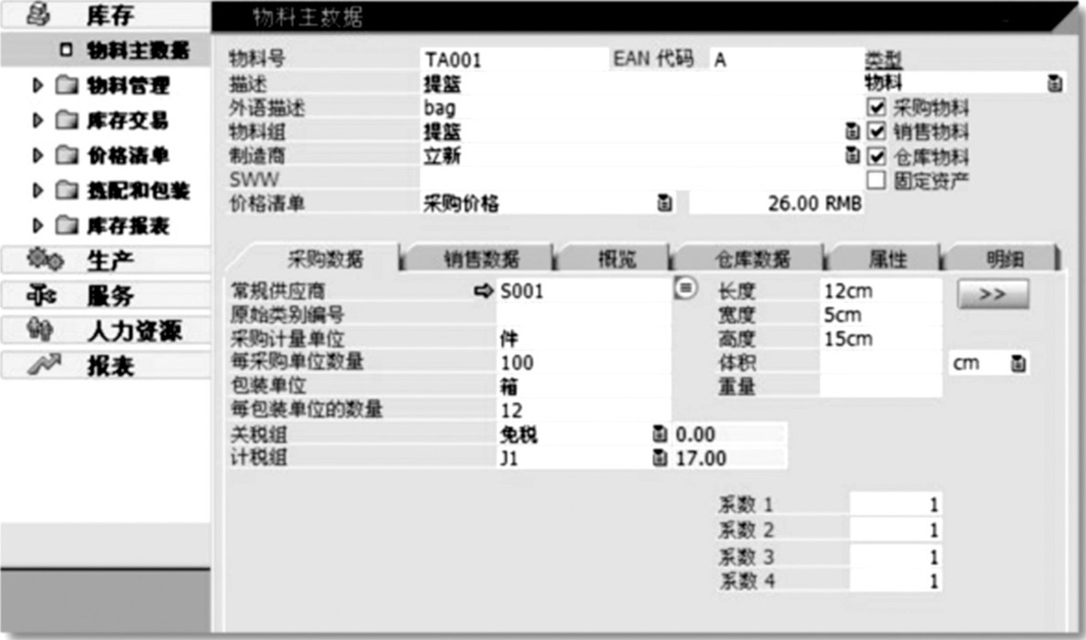 图2-2 ERP系统中的物料主文件维护界面(SAP Business One)