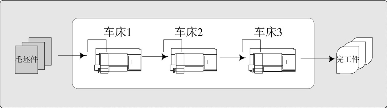 (2)串行作业。此类工作中心的作业采用流水式作业,产品在该工作中心的加工按步骤依次进行。此类工作中心的情况要复杂一些,因为加工件对工作中心的占用,从第一个工件进入第一个加工点进行加工就开始了,到最后一个加工件离开最后一个加工点才结束。