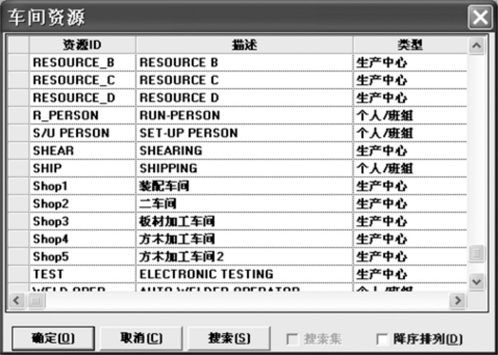 图2-8 ERP系统中的工作中心列表(Infor Visual)