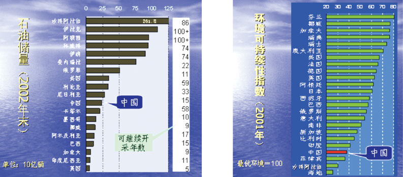 图1-1 我国的石油储量和环境可持续指数(ESI)