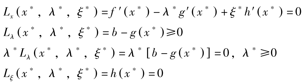 f ( x )+ λ [ b-g ( x )]+ ξ h ( x )≤ f ( x )+ λ [ b-g ( x )]+ ξh ( x )