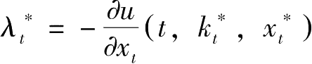需要说明的是,拉格朗日乘数 与状态变量 相对应,又称为共状态变量。它表示最优投资 的边际1单位增加所引起的总效用的增量,因此是投资品的边际价值或投资品的影子价格。