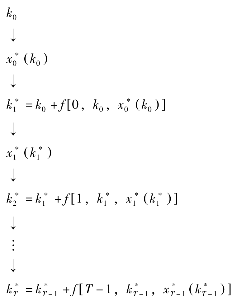 就这样每一期的政策函数依次被决定。计划期全体的政策函数与状态运动方程的关系可表示如下: