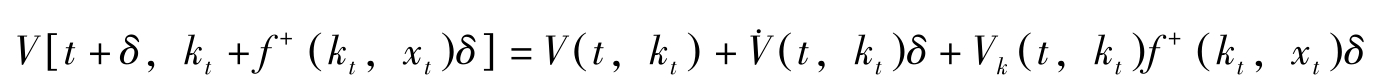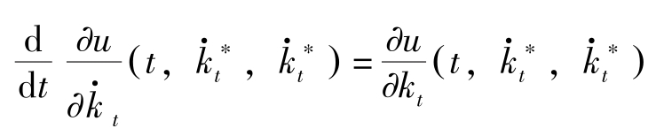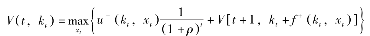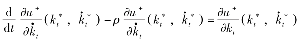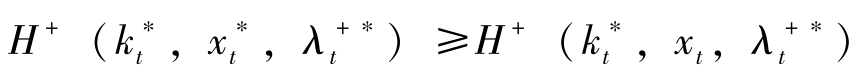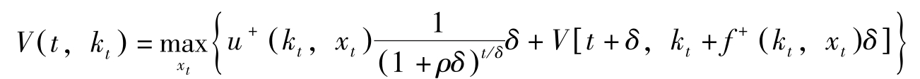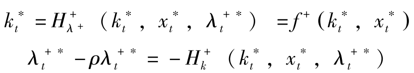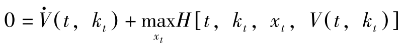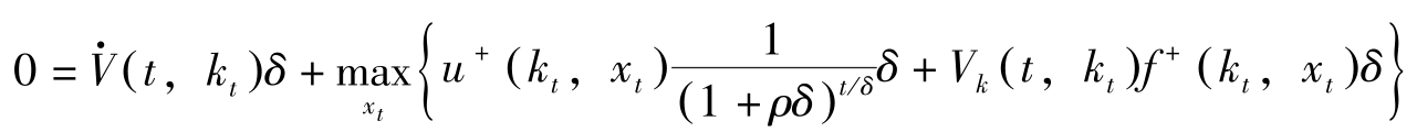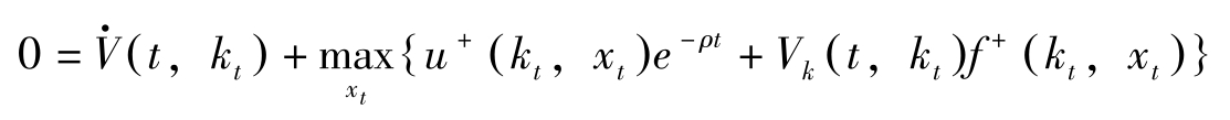这里, H [ t , k t , x t , V ( t , k t )]≡ u + ( k t , x t ) e -ρt + V k ( t , k t ) f + ( k t , x t )。上式称为Hamilton-Jacobi方程式。