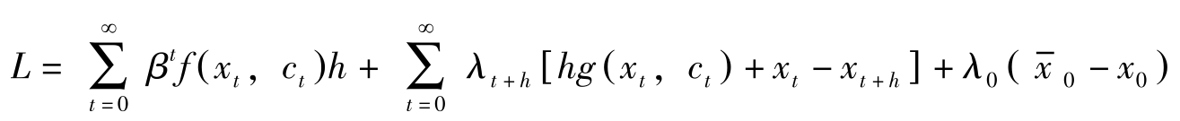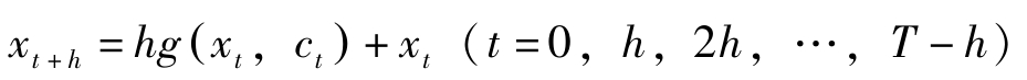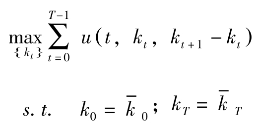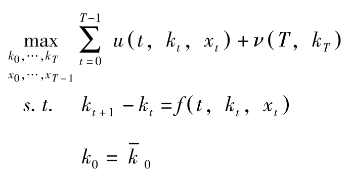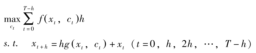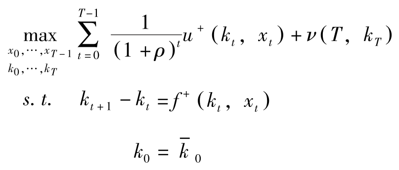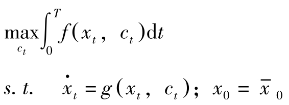 其中 T 为计划期间, x t , c t 分别为状态变量与控制变量, x 0 = x -0 。