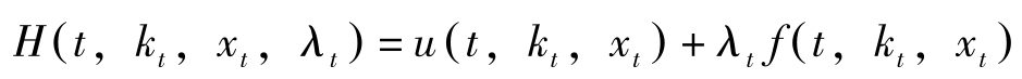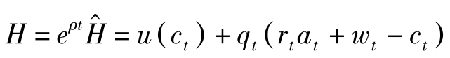 令 q t = λ t e ρt ,则 q t 表示资产的影子价格的当期值。定义Hamilton函数为: