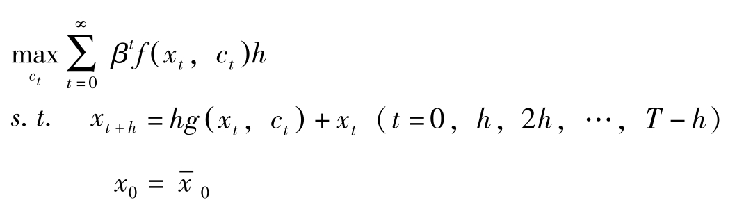 ,上述离散时间的动态优化问题对应于下述连续时间的问题: