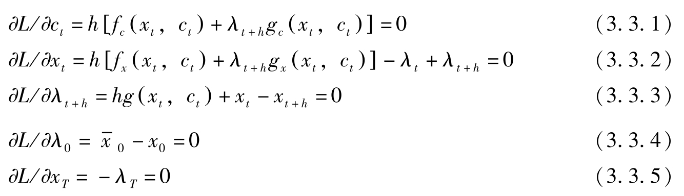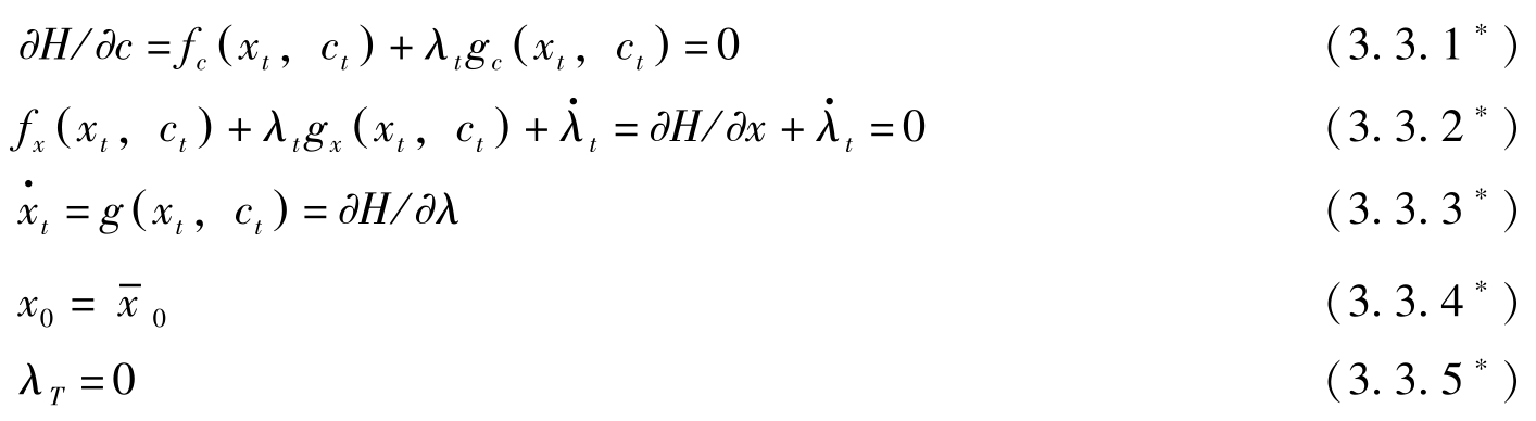 构造Hamilton函数 H = f ( x t , c t )+ λ t g ( x t , c t ),则必要条件变为: