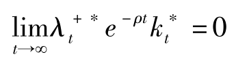 (C5)式称为横截性条件(TVC),其经济学含义是时间趋于无穷大时资产的影子价值(影子价格乘以资产数量)的贴现值应为0。否则表明资产未被完全消费掉,通过增加消费(这些资产),仍可增加效用,也就是说目前的解并非最优。