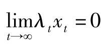 但横截性条件发生了变化,之前有限期界的场合要求状态变量的影子价格 λ T =0,现在我们无限期界的场合要求状态变量的影子价值的现值,即 λ t x t 趋于0,也即要求