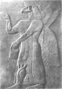 亚述纳西拔二世皇宫的浮雕--有翅膀的鸟头神像。