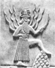 苏美尔语称乌图,阿卡德语称为沙玛什,这两个名字都是“太阳”的意思。在神话中,每天清晨,居住在东方之山上保护各条山路的蝎人,打开山腰上一扇折叠的大门,太阳神沙玛什从山门中跳出,开始他每日的旅程。太阳神出现,灿烂的金光从他的双肩射出。他手握一个宛如锯刀的器物,机警地迈步登山,与他的车夫布尼尼相会。布尼尼驾驭马车,沙玛什坐于其中。太阳神在耀眼的金光中开始缓缓地升入天空。黄昏来临,沙玛什指挥他的马车向西方之山进发。巴比伦的沙玛什神庙被称为“世界审判官之殿”。作为审判官,沙玛什端坐在王位上,右手执权杖和环,像晚期的希腊太阳神阿波罗一样。沙玛什还是一个占卜之神,他通过专事占卜祭司巴鲁向人们揭示未来的秘密。巴鲁向沙玛什献祭后,即观察倒在圣盆水面上的浮油的情状,或检查献祭牺牲的肝脏,或解释众神从恒星之位置、行星之运行和陨星之出现所得到的谕示。沙马什主要在拉尔萨和西帕尔受到崇拜,正是在西帕尔,占卜术极为繁盛。沙马什的妻子是阿亚。他们生下了两个具有抽象性格的神:正义之神基图和法律之神密沙鲁。