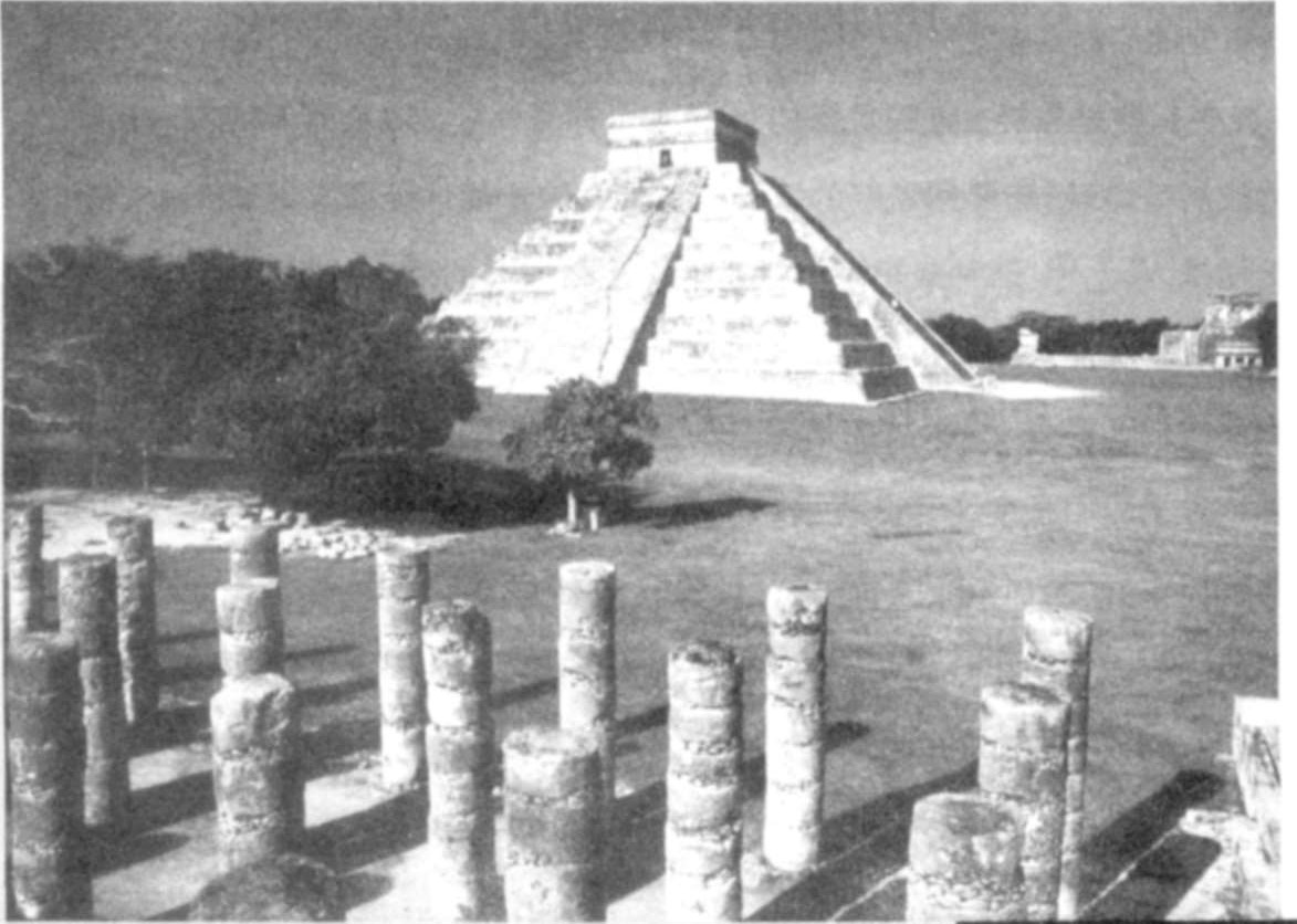 托尔特克(Toltec)神庙崇奉太阳神、月神和长羽蟒神魁扎尔科亚特尔。这一文化中心为墨西哥城北80公里的图拉。主要的祭祀中心面积约1平方公里,其中太阳神庙的金字塔高64.5米(或说60米),分5层,底部面积210×210米(或说230米)。约在同一时期,即公元600年之前,托尔特克人在墨西哥湾收复塔尔塔欣建造了一座壁龛金字塔。该塔于20世纪50年代被发掘时,由于考古学家认为该金字塔中有许多凹进去的窗式壁龛,故命名为壁龛金字塔。其中每个壁龛代表一年中的一天,可惜它们昔日的雕像已不复存在。但是,我们现在已理解,这些壁龛对于印第安人来说有着重要的天文学意义。这种金字塔的平面与婆罗浮堵佛塔的曼达拉十分相像。魁扎尔科亚特尔神庙是最主要的宗教建筑,庙顶有建有武士像巨型石柱和方形人像浮雕石柱。