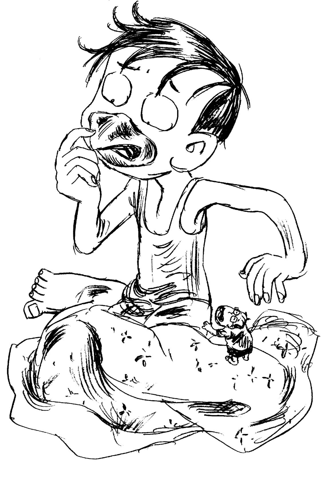你还会问:为什么你爸爸只有拇指那么大?告诉你吧,我爸爸原来和别的爸爸一样,是个一米八、五大三粗的大高个儿。他之所以会变小,是因为我的妈妈老是骂他。妈妈骂他一次,他就缩小一厘米。妈妈骂了他一百七十九次以后,他就变成了拇指小人儿。