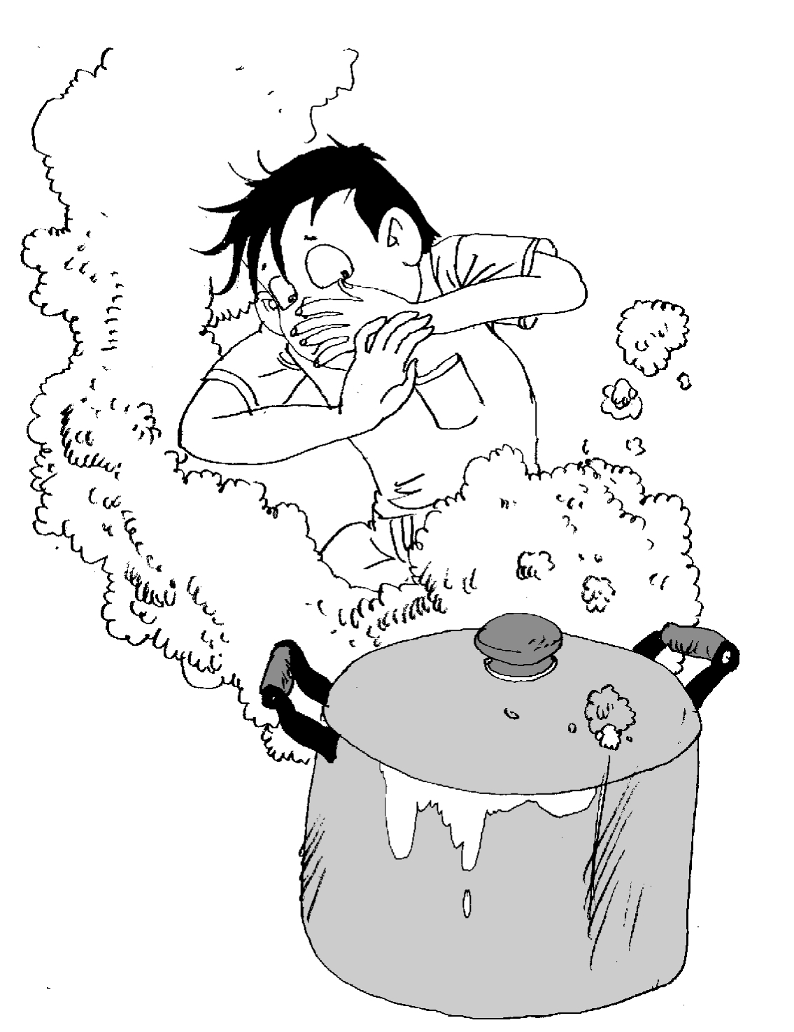 不一会儿,一股臭气扑鼻而至,天哪,这都是什么味道啊,比臭豆腐的味道还难闻!我冲进厨房,只见饭锅里冒出一股浓浓的黑烟——恶臭正是从饭锅里发出来的。