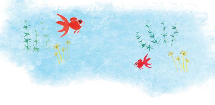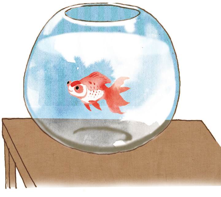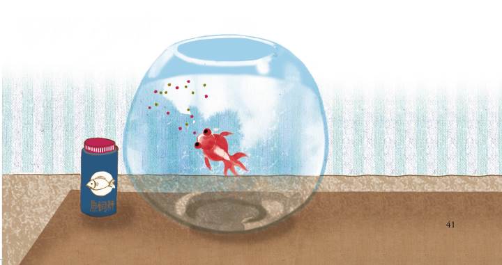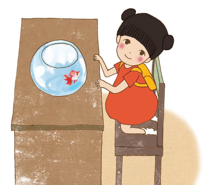 阿香一回到家,书包都来不及放下,就跑到鱼缸前。她丢下一些鱼饲料,然后对金鱼说:“你今天过得好吗?”